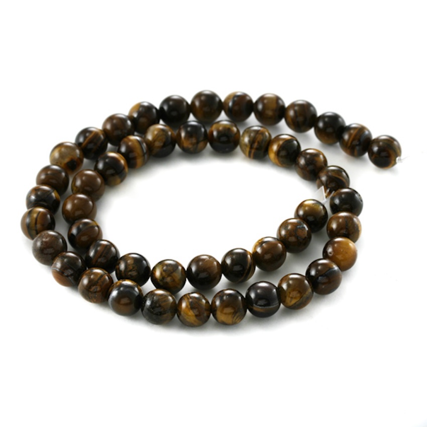 1 FIL 44 PERLES OEIL DE TIGRE BRILLANT RONDE 8MM